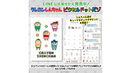 しんちゃん達がキュートなドットデザインに大変身した、LINE着せかえが登場!